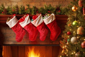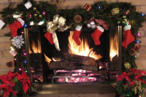 Christmas fireplace channel, Christmas fireplace cover, Christmas fireplace craft, Socks, Table