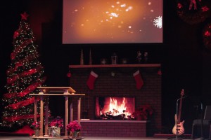 Holiday fireplace, Merry christmas, Ladder, Flag, People